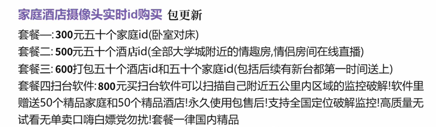 最下方有QQ直接发送邮件教程 如果看不到介绍 请联系客服邮箱咨询发图片因产品的特殊性 一律先付卷后发货 联系客服 如打不开请发送邮箱联系 想要试看的 货到付卷的 一律勿扰 质疑商城信誉的 纠结的 废话多的 勿扰 本商城终告 不相信就不要谈 不强求 谢谢 所有效果和网站上的效果图一致 ——————————————————————— ——————————————————————— ———————————————————————以下为酒店家庭实时观看偷啪ID期限为永久非包月
